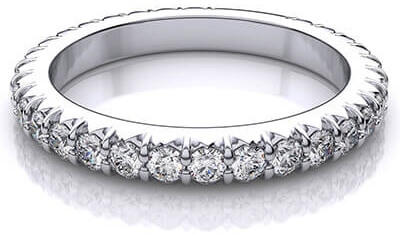 El anillo de estilo Pavé contiene diamantes incrustados más pequeños junto con una exposición mínima de metal entre ellos, asemejando la estructura de ladrillos que pavimentan una calle. Un anillo de joya memorial con este diseño sea asemeja un gran diamante alargado. Este diseño es una opción interesante para un anillo de cenizas de cremación de varios miembros de la familia que estén agrupados como una sola piedra. El estilo Pavé es atractivo si se establecen diamantes de cremación más pequeños o menos brillantes.