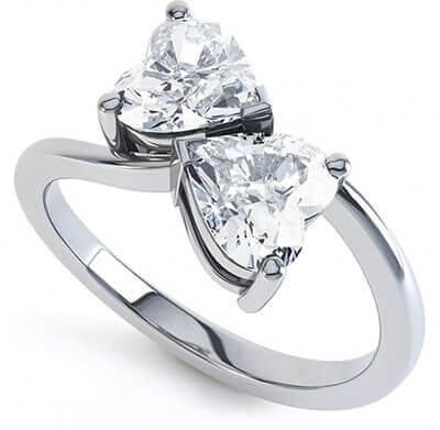 Anillo de Diamante en Forma de Dos corazones